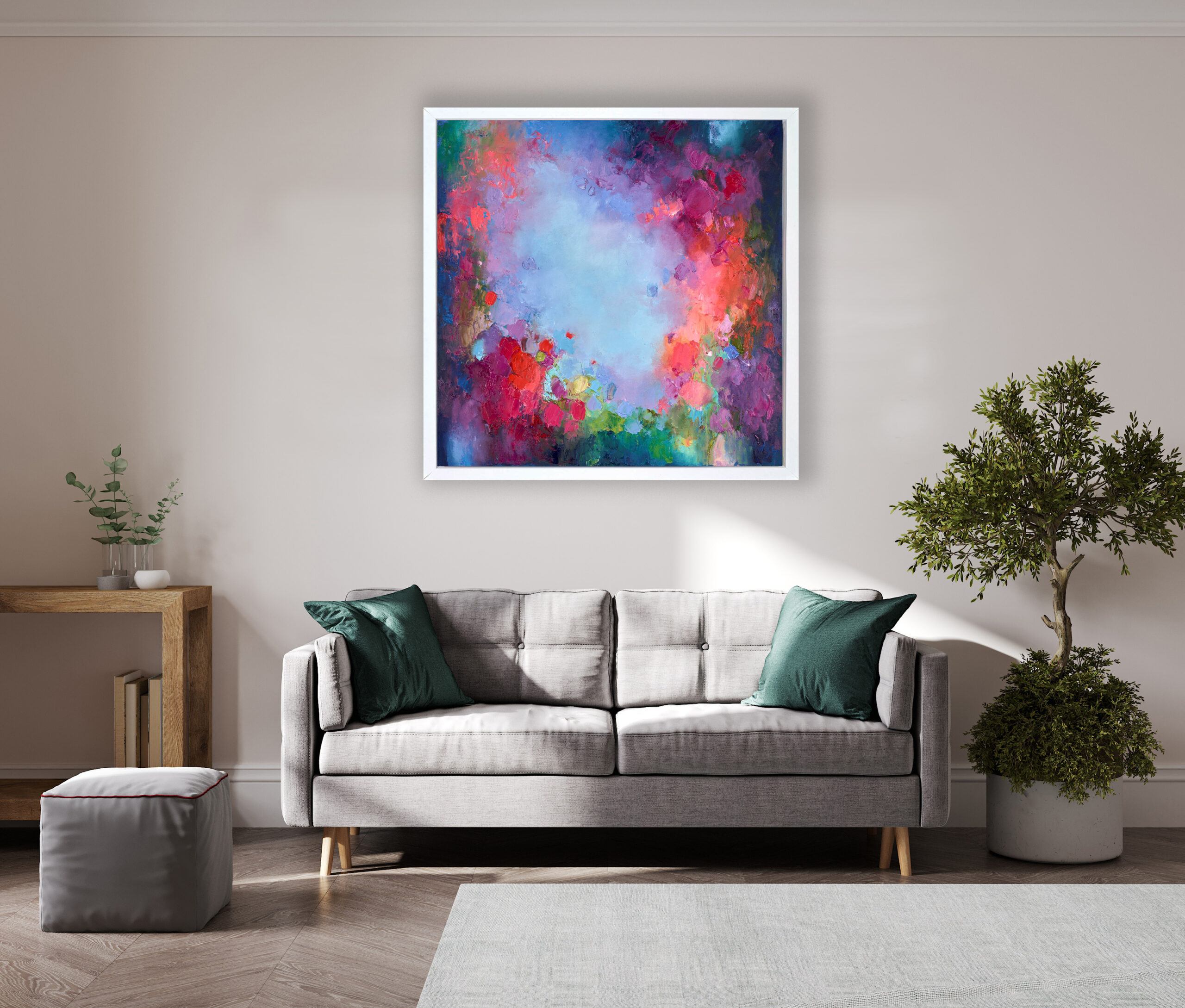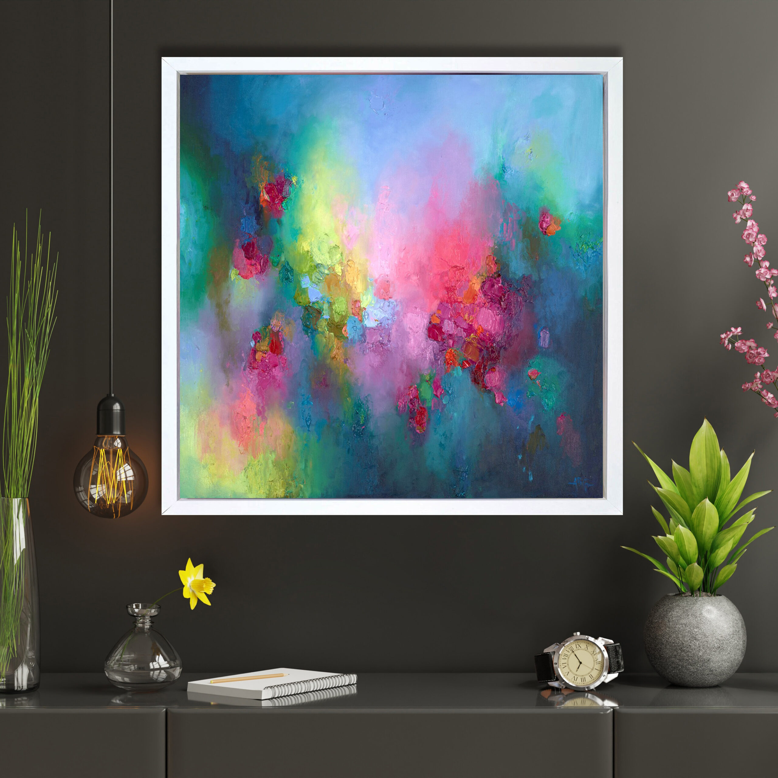 Anna paints intuitively, using an array of tools including brushes, sponges, palette knives and even her hands, letting her instinct take over. She has become increasingly dedicated to oils as her main medium, spending a great deal of time learning how they behave and can be manipulated. She does mix her media to a degree, using spray paint, metallic acrylic paints and inks to add interest and texture to some of her works. Influenced by her artist mother from a young age, Anna gradually began to develop a creative response to her surroundings. Works from impressionist masters such as Turner and Matisse, the expressive style and vivid palette of Joanne Corno, and David Downton’s effortless fashion illustrations also helped her to find her unique style and to balance the concepts of free expression with the more formal elements of composition and line.