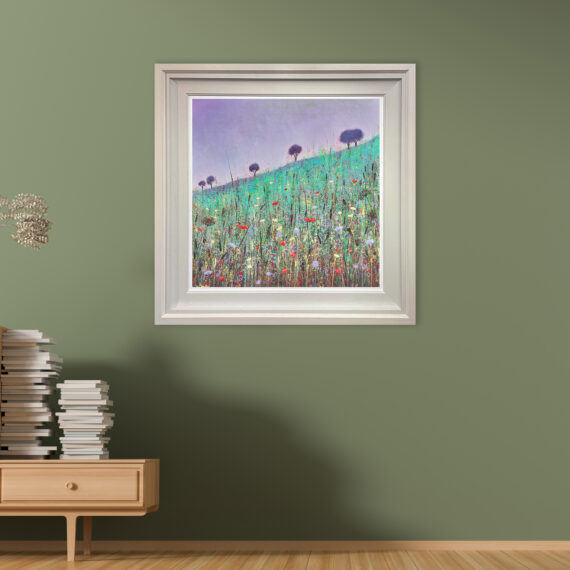 Jo likes to play with colour and this can dictate the composition of a painting. She spends all the time she can walking in the Sussex countryside and always has her camera to hand which allows her to capture a tableau as and when it happens. She says: “There are those moments where the sun creates a beautiful light glinting through wild grasses or meadows, or other times when it can be grey and mysterious, with light shining through the trees. I am drawn to colour and light, and I love the way nature is affected by the seasons and is constantly shifting and changing.”