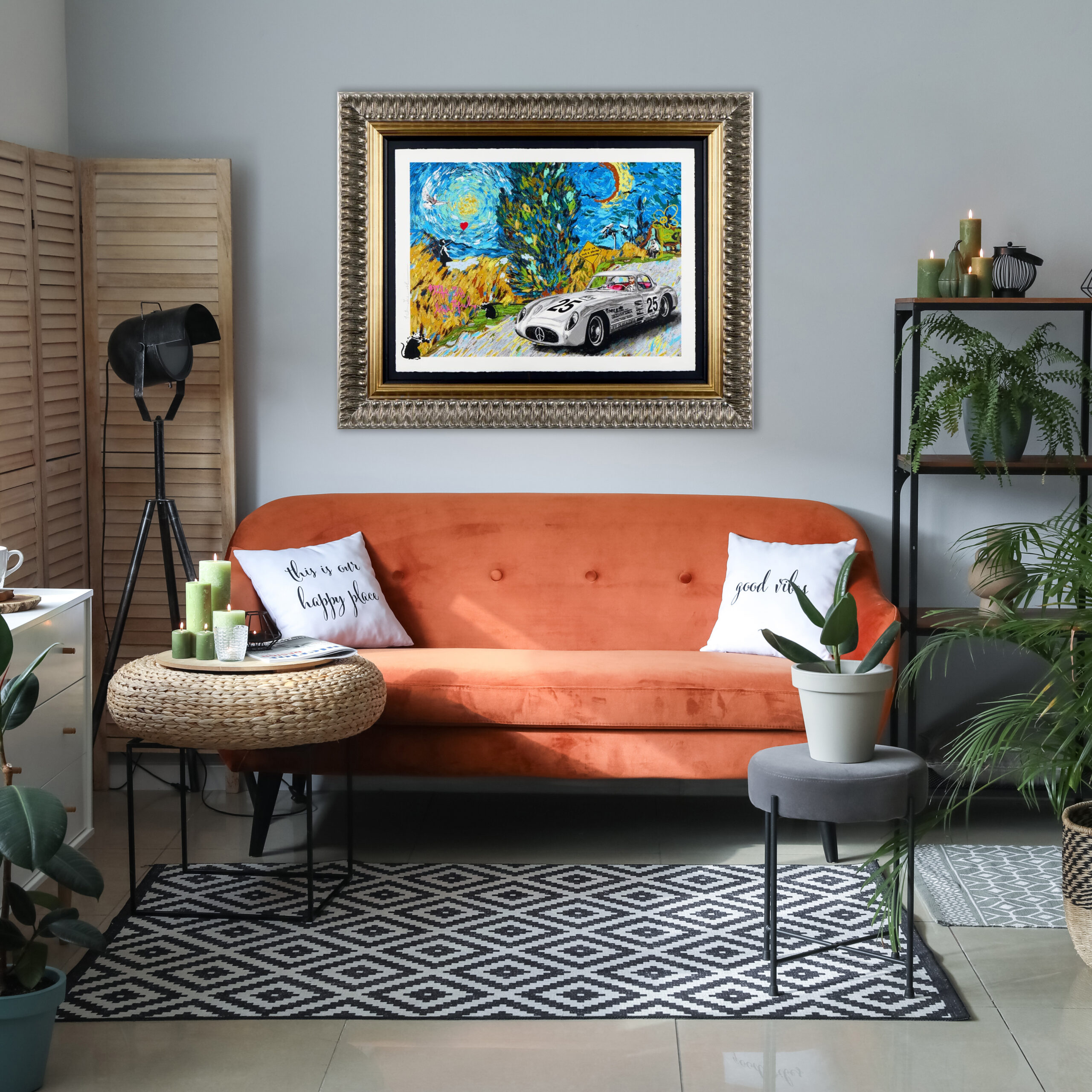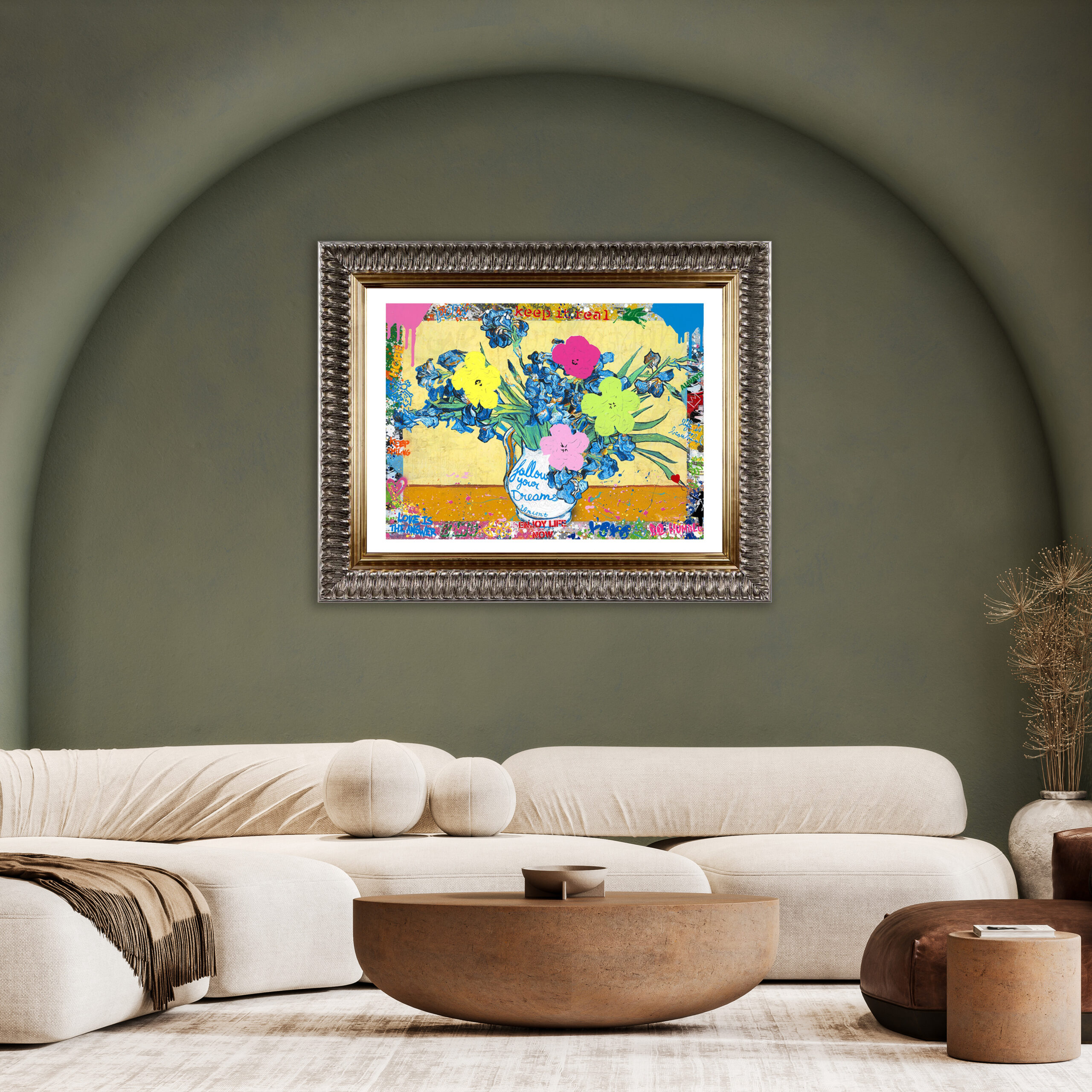 Mr Brainwash’s style has been referred to as a “collision of street art and pop art”. He often juxtaposes cultural and contemporary icons (such as Marilyn Monroe and Kate Moss) and is greatly influenced by pop artists such as Andy Warhol and Keith Haring. Using and reusing popular imagery and themes borrowed from other famous artists, such as Jeff Koon’s steel balloon animals and Banksy’s ‘Throwing Man’, Mr Brainwash aligns his artistic intentions with those of the original pop artists, producing art for everybody that can be experienced anywhere.